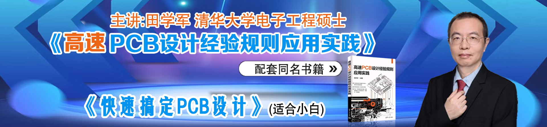 新手小白买这个课,想学嘉立创EDA画板,免费打样,想跟着高手学PCB设计,节省自己摸索的时间。 主讲老师:田学军(JT),清华大学电子工程专业学士和硕士学历。 由实战经验丰富的老师来讲解入门课程,可以说是降维打击、直击要害的。课程的介绍在第一讲。 本课程的特色是把学习的视觉提高,在学习软件操作的同时更学习一些系统层面的知识,理解PCB设计流程和设计软件的操作逻辑,了解PCB制作工艺,掌握一部份PCB设计的速度,在入门的阶段打下牢固的基础。